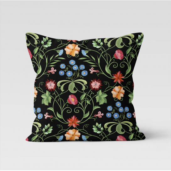 lista życzeń Dodaj do koszyka Quickview Poduszka dekoracyjna kwadratowa Ludowe kolorowe kwiaty na gałązce na czarnym tle od 92,00 zł