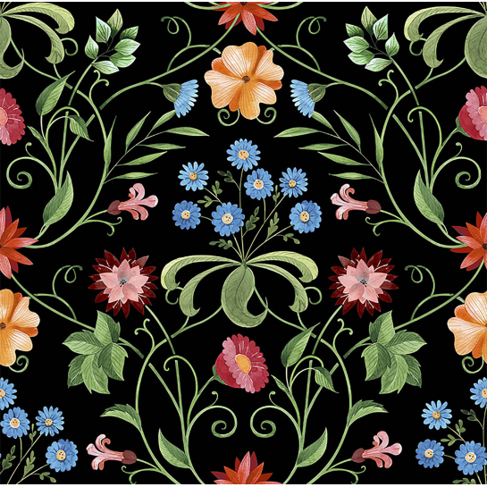 lista życzeń Dodaj do koszyka Quickview Koc plażowy Ludowe kolorowe kwiaty na gałązce na czarnym tle od 213,00 zł