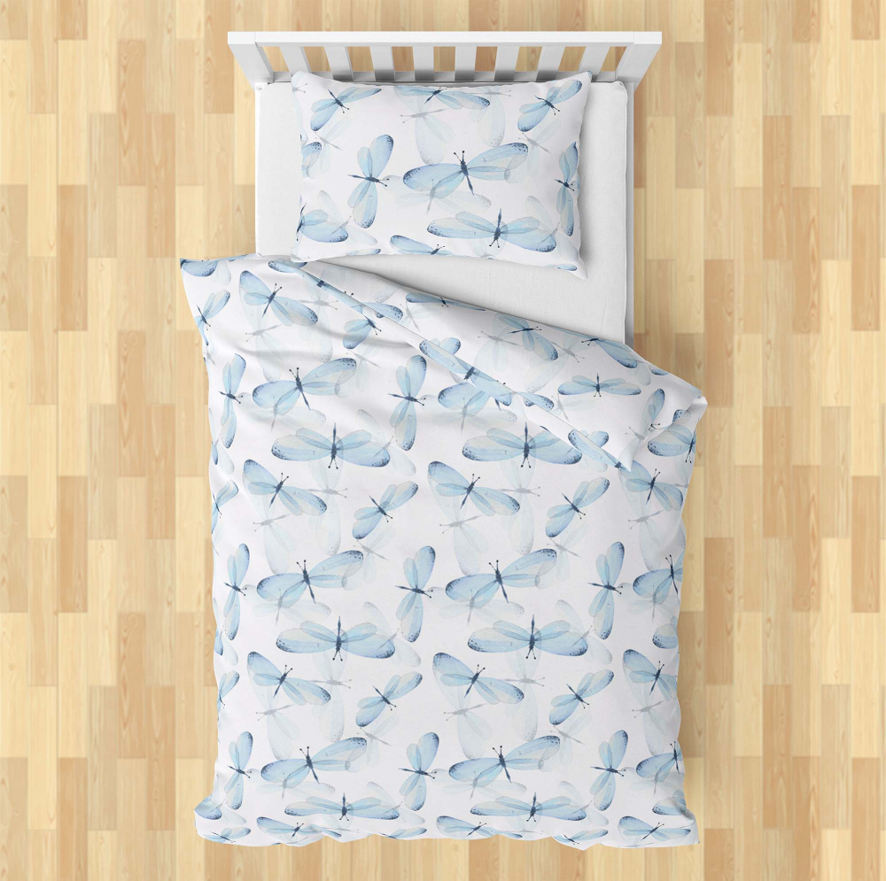 Poszewka na kołdrę dziecięcaWażki niebieskie na białym tle