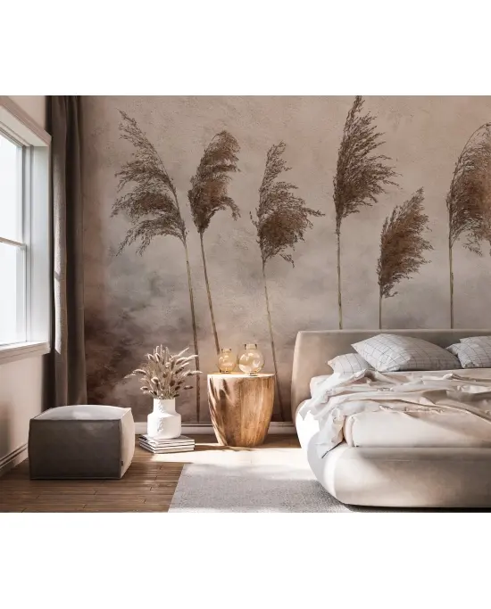 Wprowadź do swojego wnętrza kojący klimat dzięki fototapecie „Szmer traw na wietrze”. Delikatna kompozycja przedstawiająca smukłe trawy poruszane podmuchem wiatru przywołuje ciszę otwartych przestrzeni i harmonię natury. Stonowana paleta beżów, brązów i ciepłych szarości tworzy spokojne, eleganckie tło o ponadczasowym charakterze.